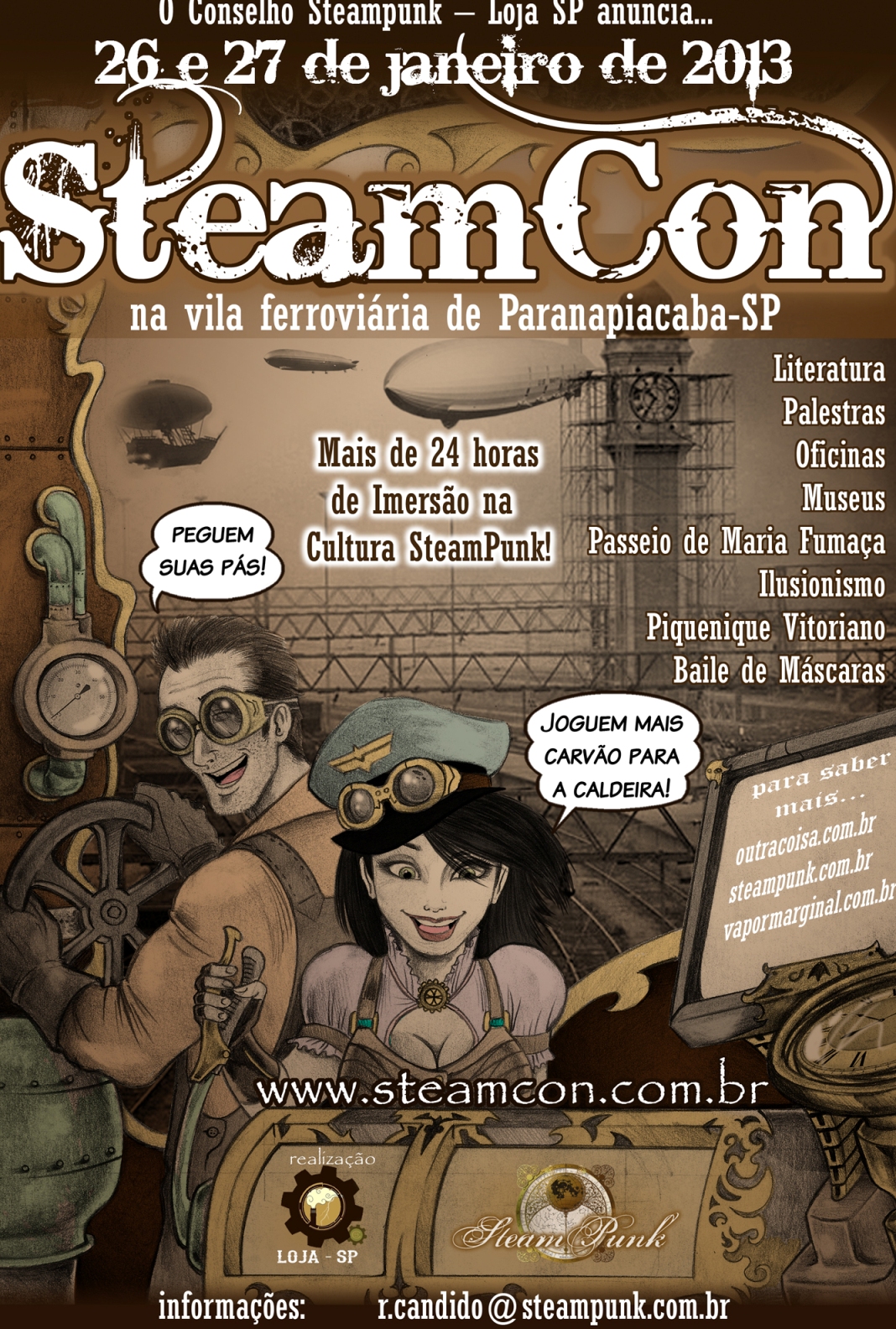 O Conselho Steampunk – Loja SP anuncia a SteamCon 2013! Serão mais de 24 horas de evento em um dos lugares mais fantásticos do Brasil: a Vila Ferroviária de Paranapiacaba!